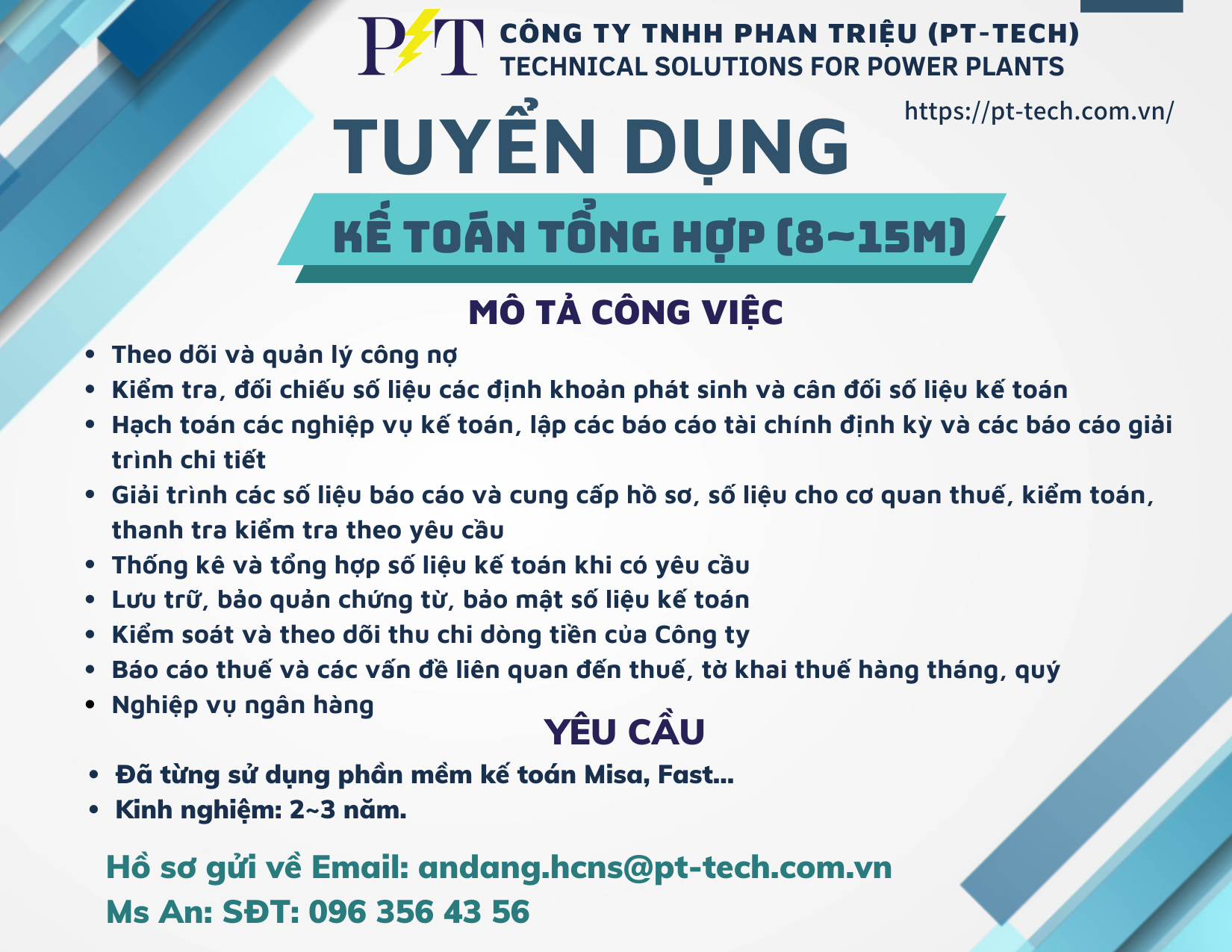 CÔNG TY TNHH PHAN TRIỆU TUYỂN DỤNG NHÂN VIÊN KẾ TOÁN VIÊN TỔNG HỢP
