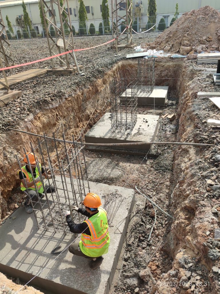 - Chuẩn bị công trường, thi công phần móng và trụ đỡ