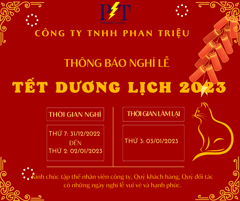 Công ty TNHH Phan Triệu trân trọng thông báo lịch nghỉ Tết Dương lịch 2023 đến toàn thể Quý khách hàng và đối tác: